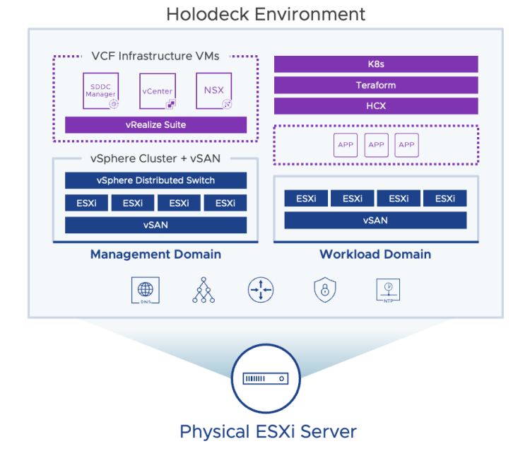 Holodeck a été développé pour permettre aux clients VMware de déployer rapidement et de façon entièrement automatisé un environnement complet VCF pour prendre en main la solution : un vrai POC as a Service.