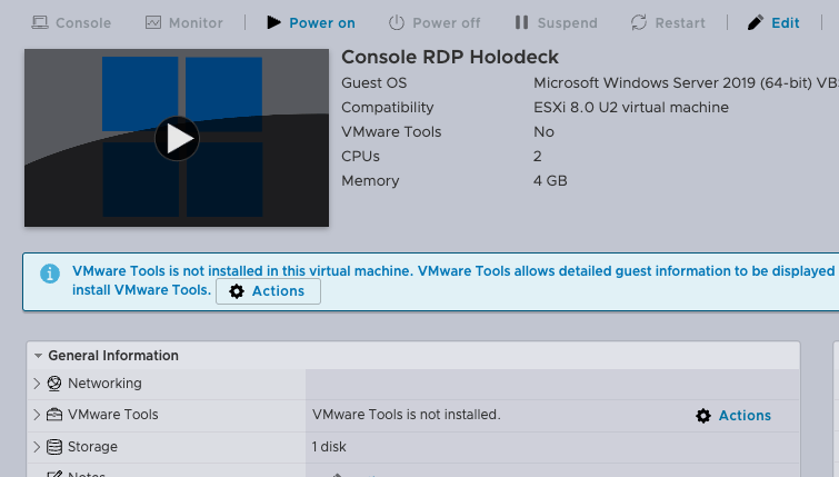On se retrouve pour la partie 3 de ce tuto d’installation d’un environnement VCF avec la solution Holodeck. Si vous avez suivi la partie 1 et 2 de ce guide, vous devriez avoir un serveur ESX configuré pour Holodeck et une image .iso de la futur console RDP.