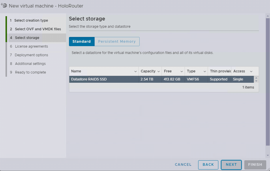 Sélectionner le Datastore local de votre machine :