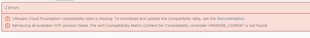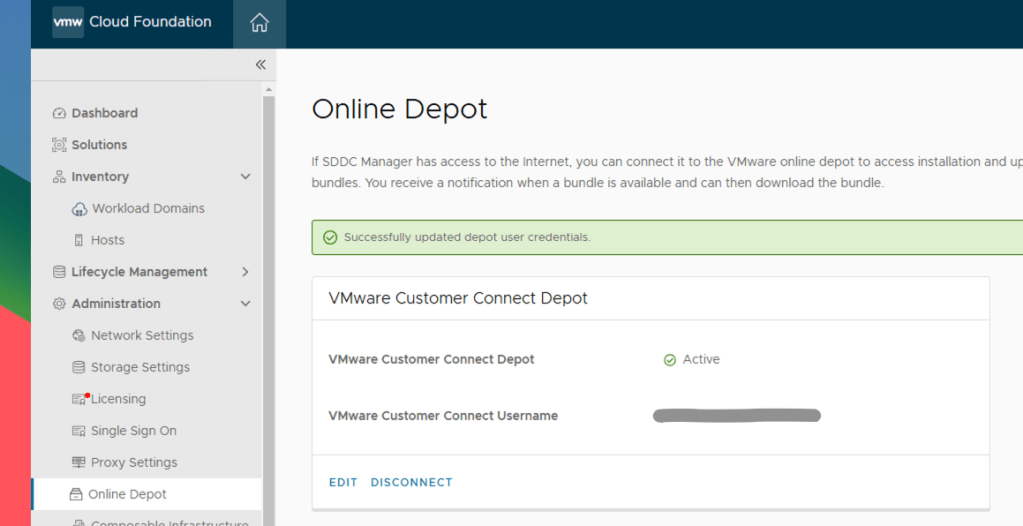 Si vous aviez déjà connecté votre SDDC Manager au Online Depot VMware, il faudra surement le refaire.