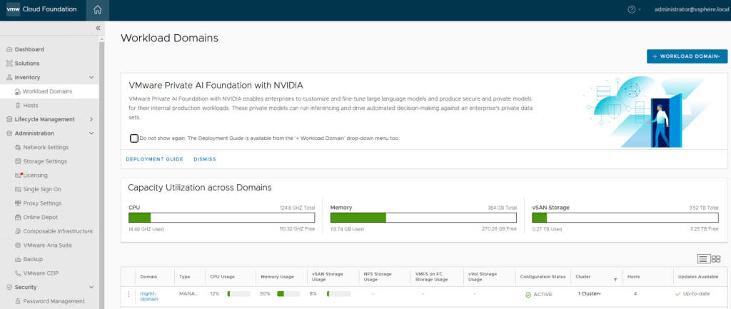 Nous retrouverons ici, tous les futurs Workload Domain que nous déploierons.